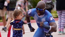 Lorelei McKelvey, 54, who is from San Diego but now lives in Yokosuka, Japan, was dressed as Captain Carter, Captain America’s British, World War II-era counterpart.