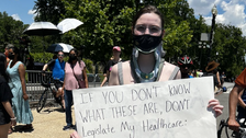 “If you don’t know what these are, don’t legislate my healthcare: Ehlers-Danlos syndrome, postural orthostatic tachycardia syndrome, atlanto-axial instability, craniocervical instability, chiari malformation type 1,” her sign read.