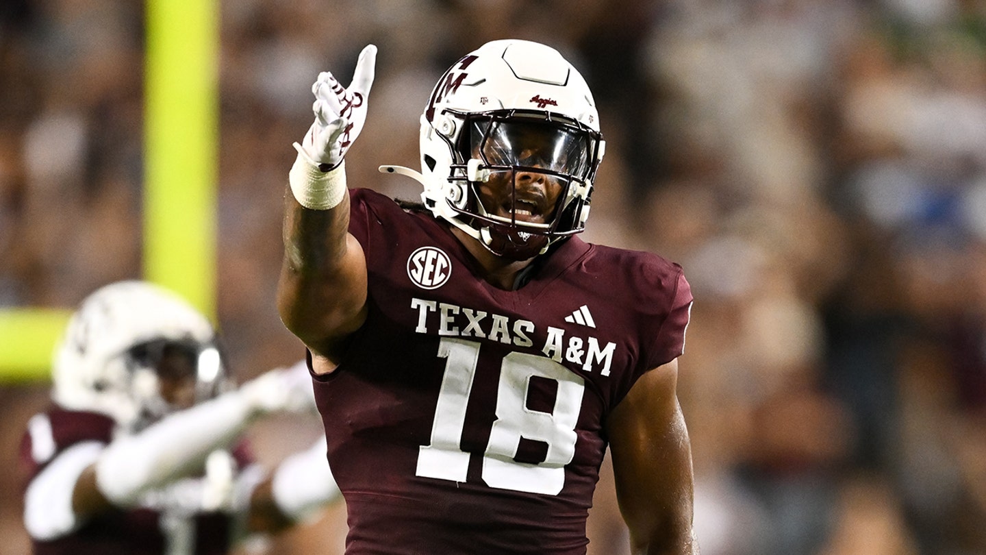Texas A&M Aggies defensive lineman Cashius Howell (18) reacts during a game against the Notre Dame Fighting Irish at Kyle Field on Aug. 31, 2024 in College Station, Texas. (Maria Lysaker/USA TODAY Sports)